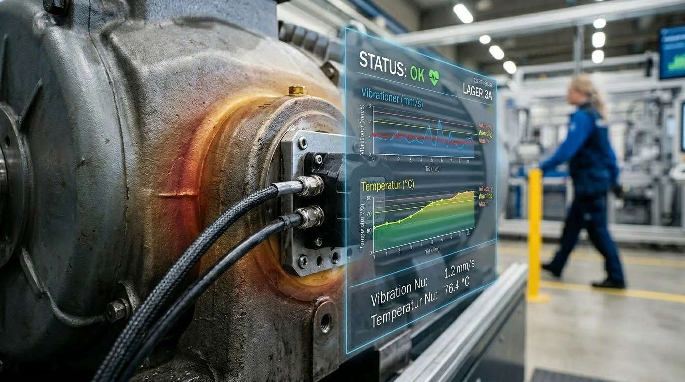 -Fokus ligger på maskinövervakning, vibrationer, temperatur och analys av tillstånd över tid.
